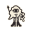 A cartoon illustration of a character with one eye, long hair, and a body with an arm and leg, riding a rocket. The rocket is black and white, with tail flames depicted as black shapes.